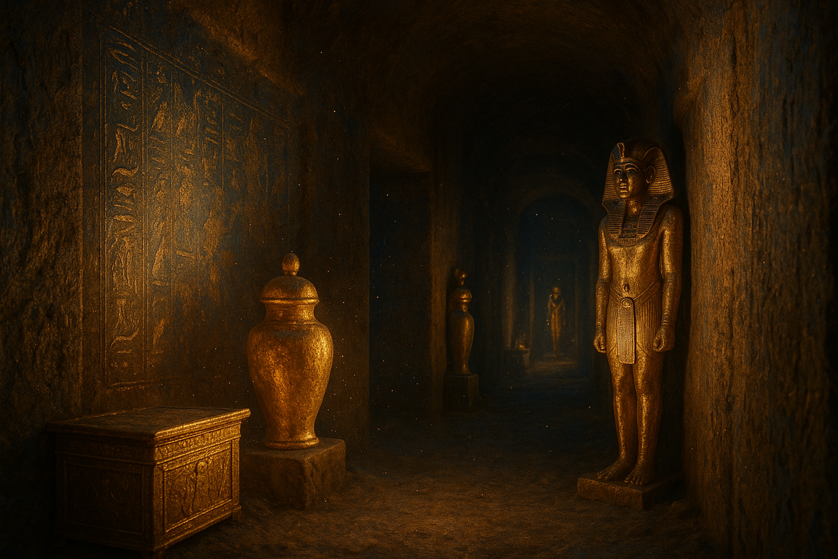 Archeologický nález pokračuje v ohromování světa i po více než století: hrobka faraona Tutanchamona, objevená v roce 1922 britským archeologem Howardem Carterem, obsahovala více než 110 kilogramů čistého zlata ve formě šperků, amuletů, masek a dalších pohřebních předmětů.