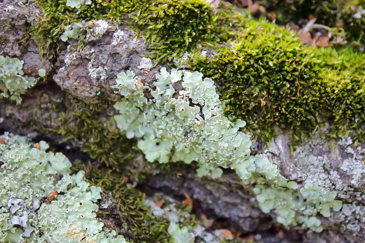 Mech je drobná rostlina , která absorbuje vodu a živiny ze vzduchu. Nemá kořeny, přichycuje se k povrchu kůry. Lišejník je symbióza řasy a houby . Řasa produkuje živiny a houba zajišťuje ochranu a přilnavost ke kůře.