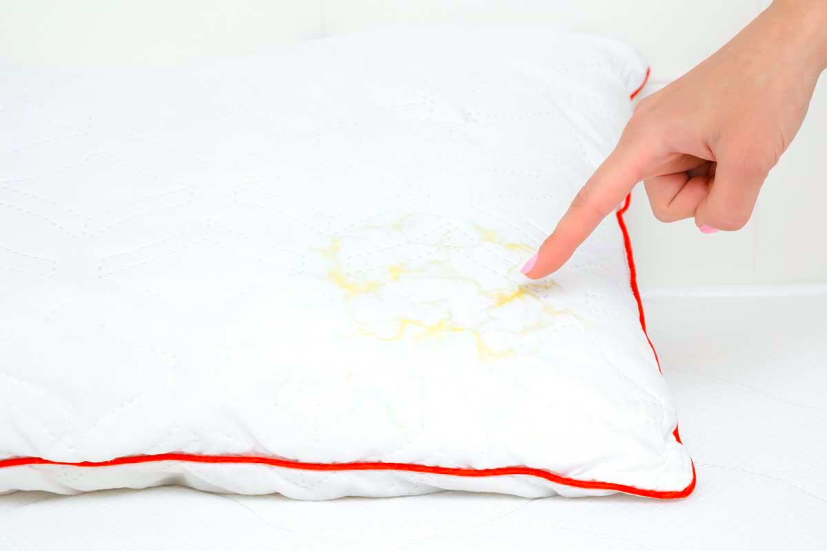 Žluté a hnědé skvrny na polštářích se obvykle objevují kvůli slinám.