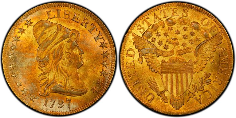 Design rytce Roberta Scotta a rubová strana s vyobrazením heraldického orla učinily z této mince ikonu americké numismatiky. V současné době se dochovalo pouze asi 250 exemplářů, z nichž méně než 50 si zachovalo kvalitu MS60 nebo vyšší. Foto PCGS.…